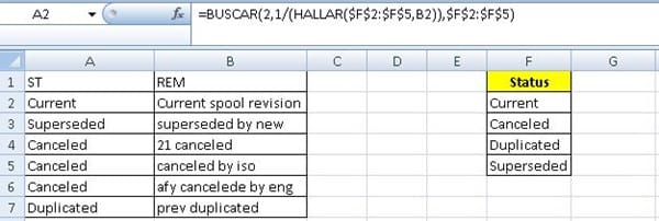 Buscar palabra clave dentro de un texto en una celda de Excel e insertar el estatus en otra celda.