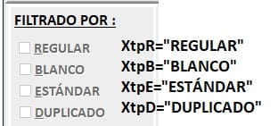 TENGO 4 CheckBox y según la necesidad del usuario va ir selccionando el tipo un día puede filtrar por Regular y Duplicado y otro día Estándar Regular y así sucesivamente por ello dentro de cada CheckBox esta