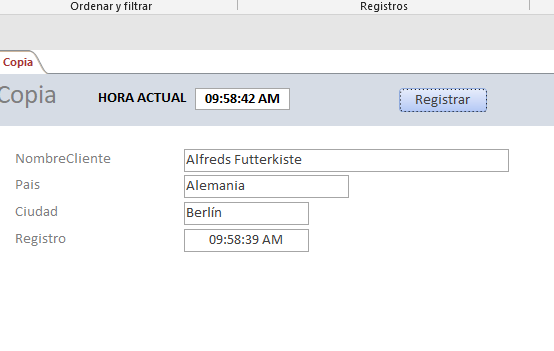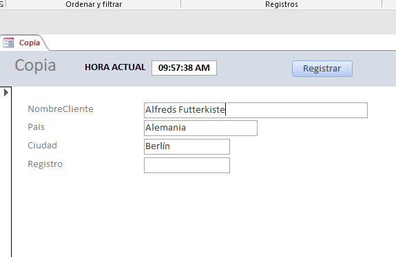 Digamos que estor registrando un cliente nuevo a mi base de datos desde visual basic, una vez terminado de ingresar sus dato y al momento de presionar en el botón REGISTRAR, debería de registrarme en la base de datos de Access todos los datos en cada campo que corresponda y la hora que se encuentra en el control DTPickerHora debería de registrar en el campo horaregistro.