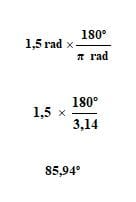 Convierte a grados sexagesimales 1.5 radianes y 6.2832 radianes