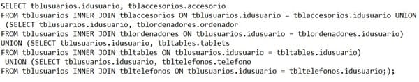 Tengo varias tablas: usuarios, ordenadores, teléfonos, tablets y accesorios.