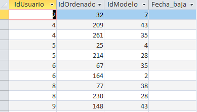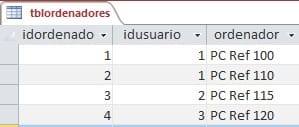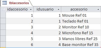 Es importante decir que un mismo usuario puede tener varios dispositivos asignados en una misma tabla (2 ordenadores o 2 teléfonos o 3 accesorios).