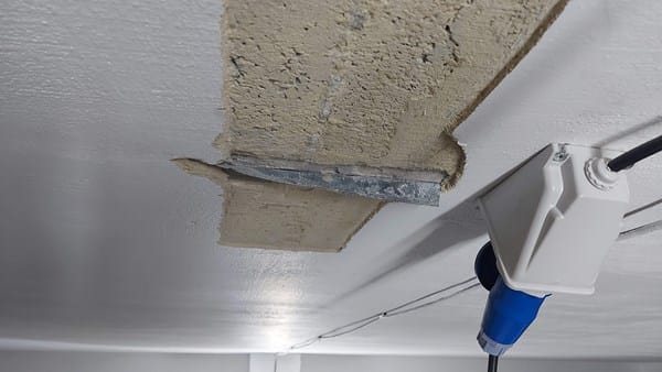 Mediante unos chapones atornillados a 4 viguetas de hormigón pretensado anclados con taco químico y varilla roscada, el resultado ha sido del todo satisfactorio.
