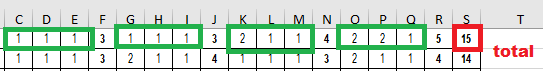 Necesito distribuir varias cantidades totales como ejemplo en la imagen, 15 es el total y necesito distribuir en 4 rangos con cantidades de 1 y 2