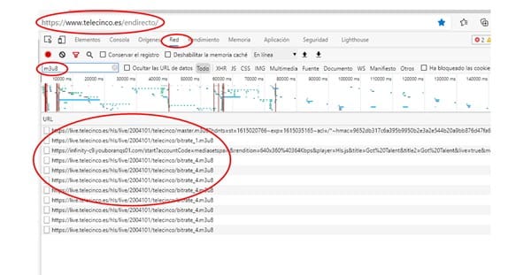 Adjunto imagen de un canal de televisión y de donde se extrae la url.