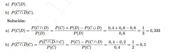 No entiendo la resolución del apartado b de la foto adjuntada. Cómo se realiza la intersección si C=0'4, D=0'6 y la unión de C y D es de 0'8?