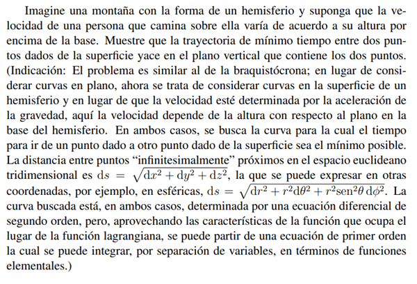 $$\begin{align}&v(z) = \dfrac{Rd\theta\sqrt{1+sen^2\theta{\phi'}^2}}{dt}\end{align}$$donde R es el radio del hemisferio, y θ y φ pertenecen a las coordenadas esféricas, mientras que φ' es la derivada de φ respecto de θ.
