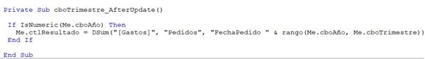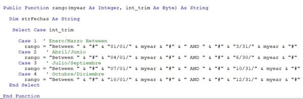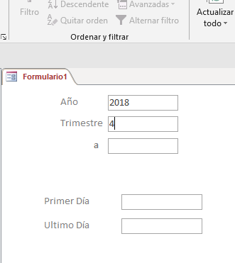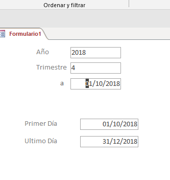En un formulario tengo un cuadro de texto donde introduzco el año y un cuadro combinado donde selecciono el trimestre. ¿A partir de estos campos puedo obtener la fecha inicial y la fecha final para luego usarla en un DSUM entre fechas?