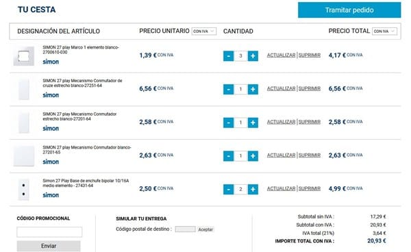Poner lo mismo que lo que tienes de Simon 27 en blanco te sale por 20,93 en esta web por ejemplo: https://www.123elec.es/