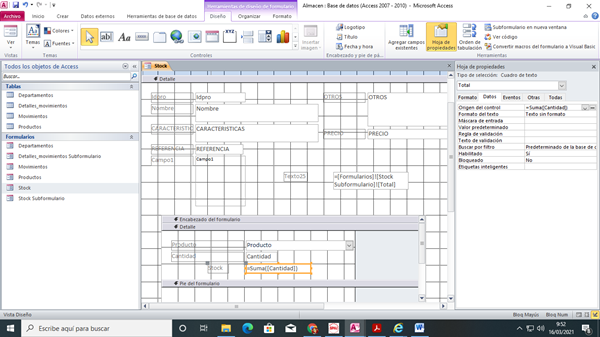 Tengo un formulario con subformulario para totalizar la cantidad de los productos. En el subformulario inserto un cuadro de texto calculado con la suma de las cantidades. Luego en el formulario principal inserto un cuadro de texto y con el generador de expresiones pongo el origen de datos en el anterior cuadro de texto del subformulario y me da el error de la pregunta. No se que estoy haciendo mal ya que otras veces lo he hecho así y me ha funcionado.