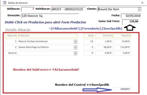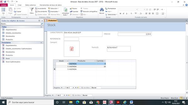 Error #¿Nombre? En cuadro de texto de formulario con subformulario