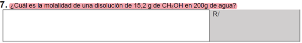¿Cuál es la modalidad de una disolución de 15,2 g de CH3OH en 200g de agua?