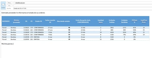 1- ¿Hay posibilidad de agregar el nombre del proveedor a el asunto? Para que quede fluvial SA, le comparto el estado de OC al