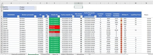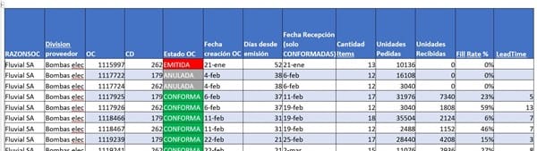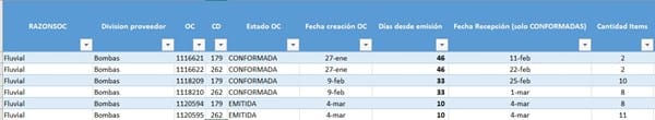 2- OK, ahi estarian todas las OC de 2 proveedores