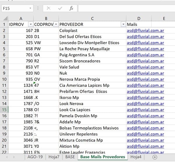 1. La hoja "Base Mails Proveedores", deberá estar en el mismo libro.