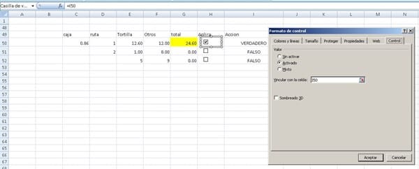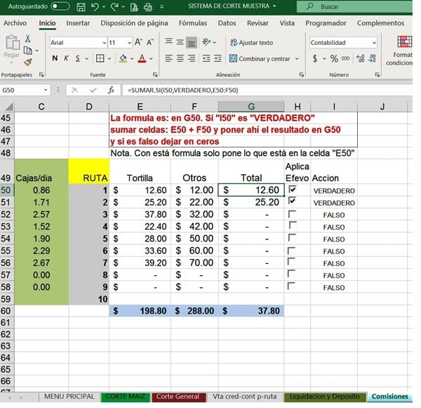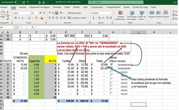 Tengo una hoja excel 365 con 9 vendedores y cada uno check box programado en una celda para que al estar activo me ponga verdadero y desactivado falso, en otra celda un resultado de una suma que al estar activado (verdadero) sume otras celdas y si es falso me ponga $0.00. Le he intentado con algunas formulas y no me sale, alguien me puede ayudar.