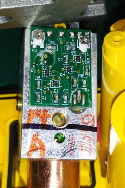 Ya he probado con pilas alcalinas nuevas (lleva 3xLR6), he limpiado contactos y no se soluciona, sólo se distingue la línea vertical a oscuras. En la entrada de corriente en placa hay los 4,5V que necesita ¿Alguien sabe si puede deberse al desgaste o daño en el diodo láser? ¿Cuál puede ser la causa?