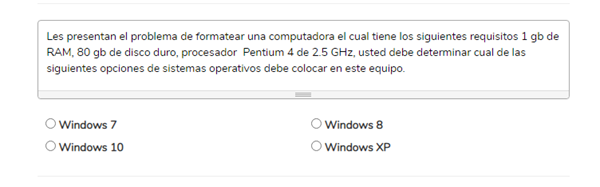 Les presentan el problema de formatear una computadora el cual tiene los siguientes requisitos 1 gb de RAM, 80 gb de disco duro,