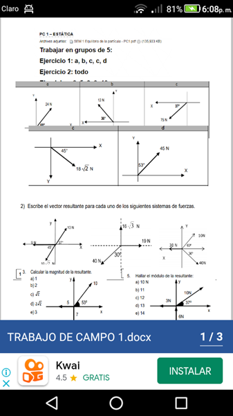 2.-Escribe el vector resultante para cada uno de los siguientes sistemas de fuerzas