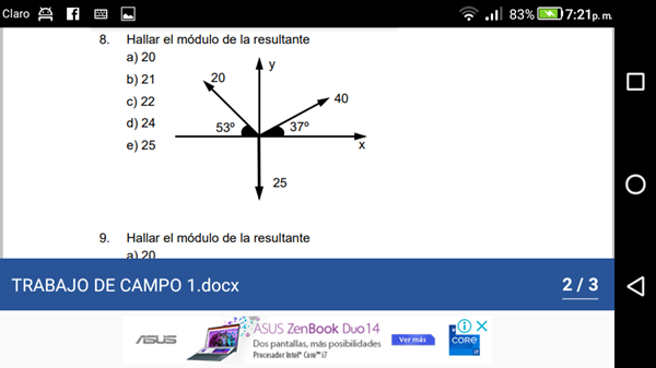F1x = 40 cos 37 ° = ............................F1y = 40 sen 37 ° = ................................