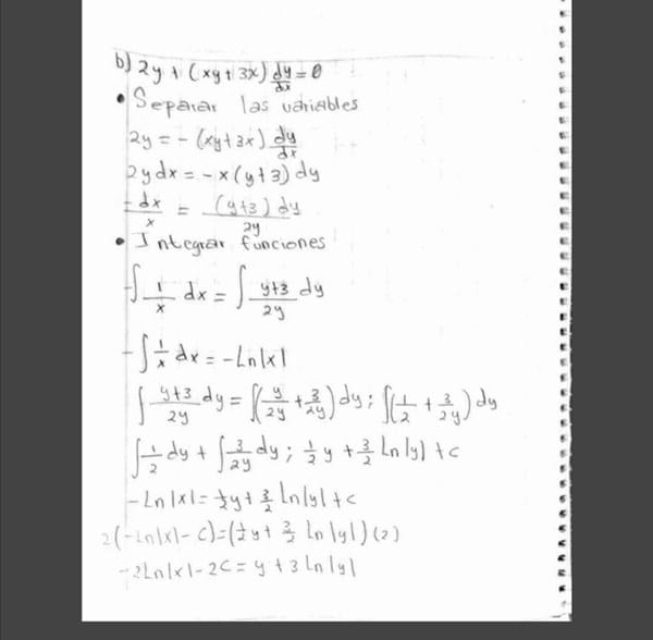 ¿Cómo despejar la variable (y) en cada una de estas dos funciones para así encontrar la solución general a la ecuación diferencial?