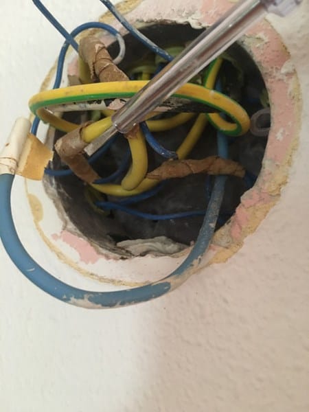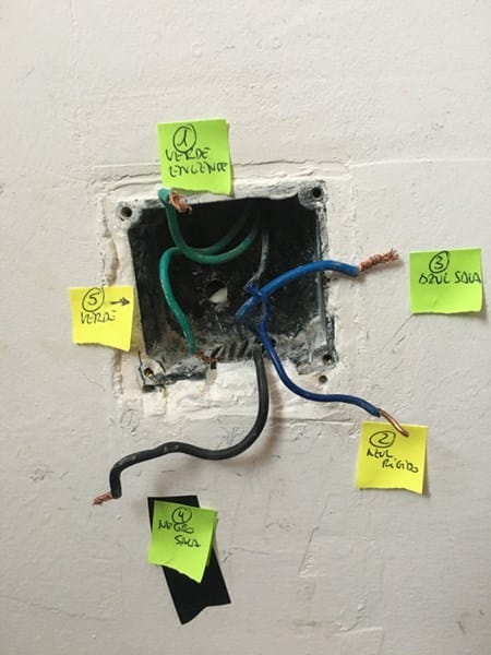 Abre el interruptor de la entrada de la habitación y envía una foto de los cables.