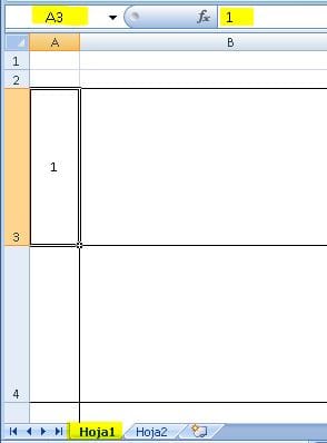 PASO 4. Ahora vamos a la Hoja1, en la celda A3 escribe el número 1. (Este número es para identificar la celda de la Hoja2).