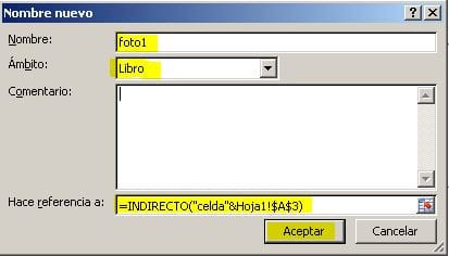 PASO 2. En la Hoja2, en cada celda donde tienes cada foto deberás poner un nombre de celda, para mi ejemplo a cada celda la voy a nombrar como "celda1", "celda2", "celda3", etc.
