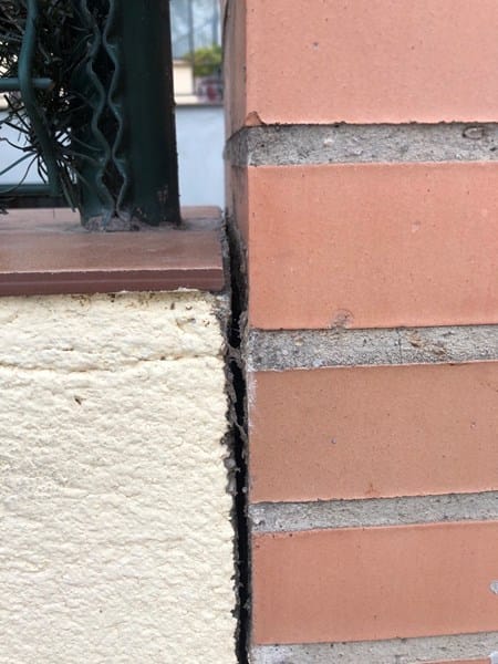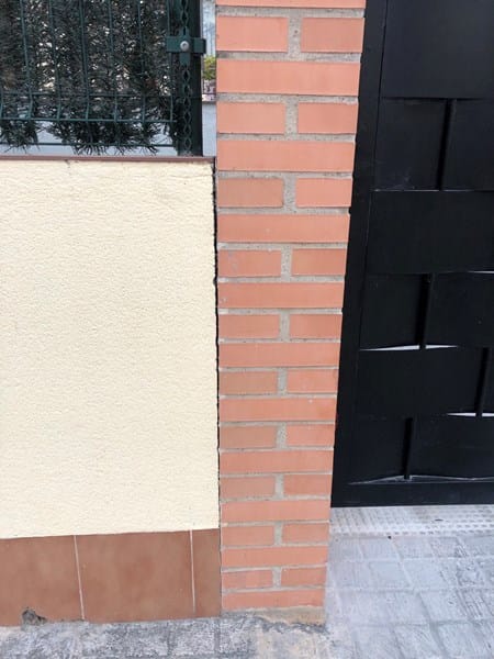 Me han colocado una viga metálica para reforzar un pilar de ladrillos y colocar una puerta de garaje batiente, pero se ha despegado del muro adyacente. ¿Qué solución puede darse a esto?