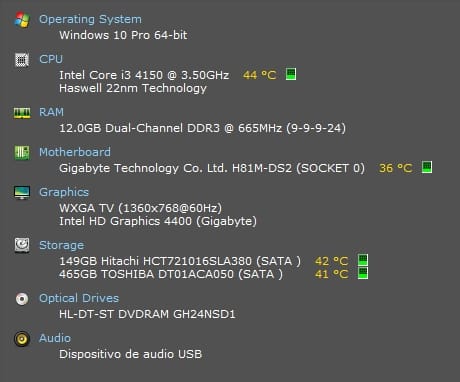 Agrego una foto de lo que arrojó el programa speccy de cómo se encuentra el estado actual.