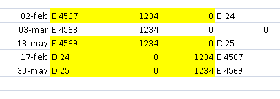 En imagen se marcaría el e4567 con el d24 porque son del mismo mes, y el e4569 con el d25 porque también son del mismo mes.