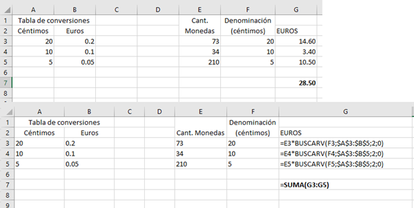 Con esto de tener tantas monedas de céntimos, me gustaría solicitarles una tabla, en la que diciendo tengo, por ejemplo, tengo 73 monedas de 20 céntimos, 34 de 10 céntimos, 210 de 5 céntimos, 318 de 2 euros, y 427 de 1 euros... Todo ello son, por ejemplo, 34 euros con 47 céntimos. Algo así, en un ejemplo,