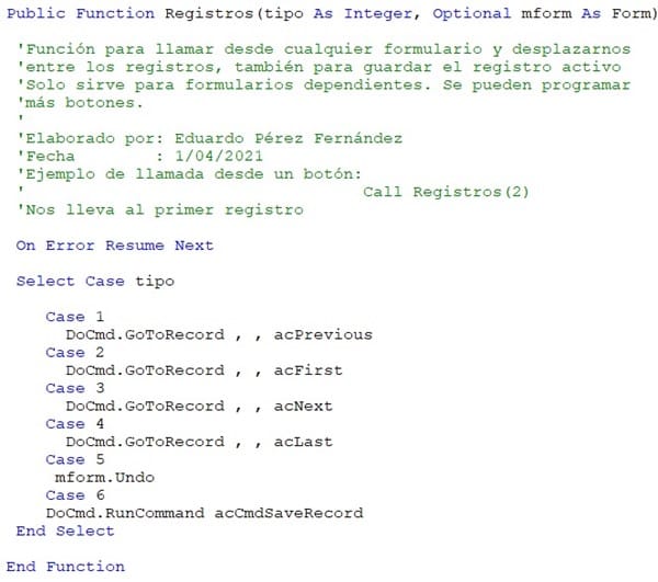 Como digo en el enunciado, mi pregunta es esta: ¿Es posible codificar un botón para que cumplan su función en cualquier formulario que interese sin tener que generar otro procedimiento "sub"?