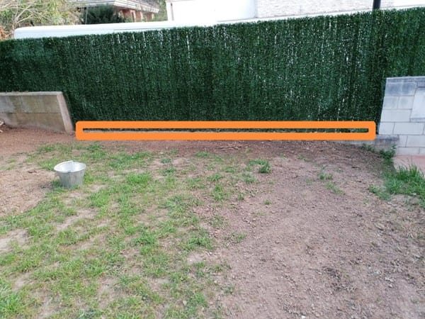 Me van a traer unas sacas de tierra y en la zona del fondo de la foto tengo que poner algo para que no se escape creo que con unos 12 cm es suficiente.