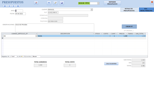 Pasar de un formulario presupuesto a formulario orden de trabajo