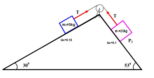 Para el sistema mostrado en la figura, que en un estado inicial se encuentra en reposo determinar: