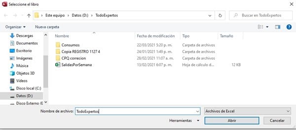 'Apertura de fichero Excel ya creado