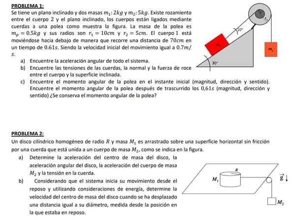 El dibujo no es muy claro, pero suponemos que la cuerda esta arrollada sobre el cilindro y se aplica una fuerza externa que genera un torque de valor M2 g R.
