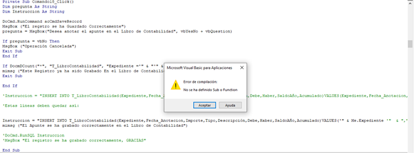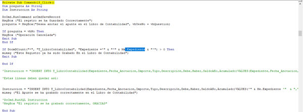 If DocmDCount("*", "T_LibroContabilidad", "Expediente like '" & Me.Expediente & "'") > 0 Then
