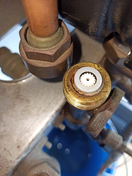 Estoy intentando cambiar el flotador magnético, pero la parte superior está taponada por un trozo de plástico, debe de ser una válvula o algo por el estilo, está muy incrustado en la tubería. ¿Sabes lo que es? ¿Cómo lo podría retirar sin causar ningún daño? Adjunto foto.