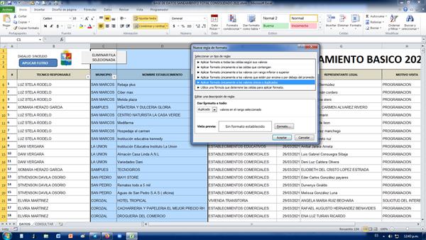 Busco más bine esta idea, que me resalte en color las 2 filas repetidas que tengan