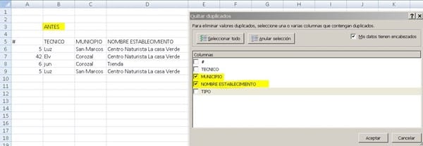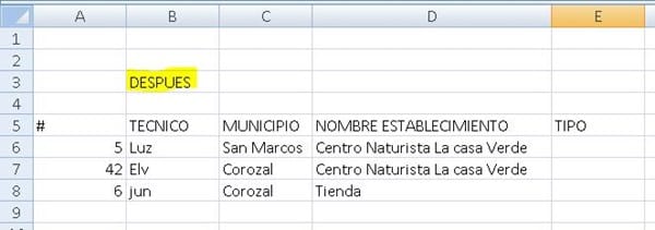 "Nombre del establecimiento" ya que los demás si debe llevar los datos como se muestra en la imagen pero el Nombre del establecimiento es único,,,