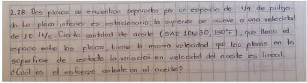 Dos placas se encuentran separados por un espacio de 1/4 de pulgada. La placa inferior es estacionaria;la superior se mueve a una velocidad de 10 ft/s..............