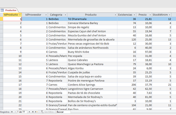 Como sí. Supongamos que tengo una tabla Productos, con unas existencias iniciales( fíjate en las existencias de Te Dharamsala)