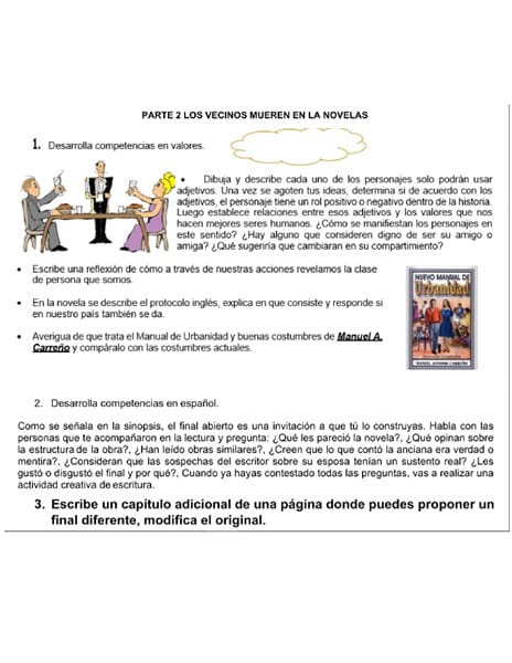 Libros y Literatura Julian Andres Caro... el 25 abr. 21 Describe cada uno de los personajes del libro los vecinos mueren en las novelas solo podrán usar adjetivos @ a qui esta el resto de las preguntas me podrían ayudar es urgente Seguir Siguiendo Dejar de seguir