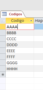 Luego hay otra tabla "códigos" con un campo "código" que quiero relacionar con los tres campos anteriores, ya que todos los códigos posibles se encuentran ese campo.