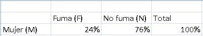 Si el 58% de la población española mayor de 18 años es de sexo femenino y entre la población de esa edad se sabe que el 24% son mujeres que fuman, ¿Cuál es la probabilidad de que escogida una mujer al azar mayor de 18 años sea fumadora?