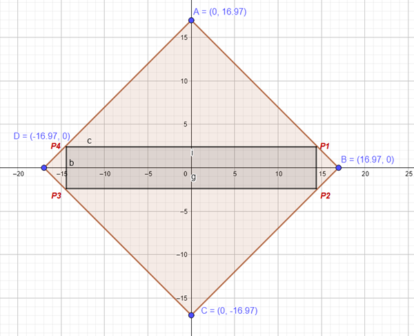 En la siguiente figura, el cuadrado exterior tiene lados que miden 24cm y los lados del rectángulo interior cumplen que b/c=1/3