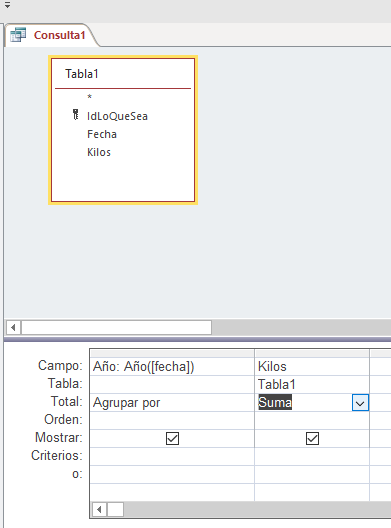 Tengo una base de datos, tengo los campos de fecha y kilos, quiero hacer una consulta donde me agrupe todos los kilos por año