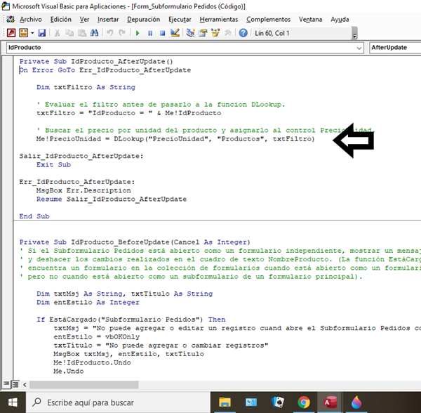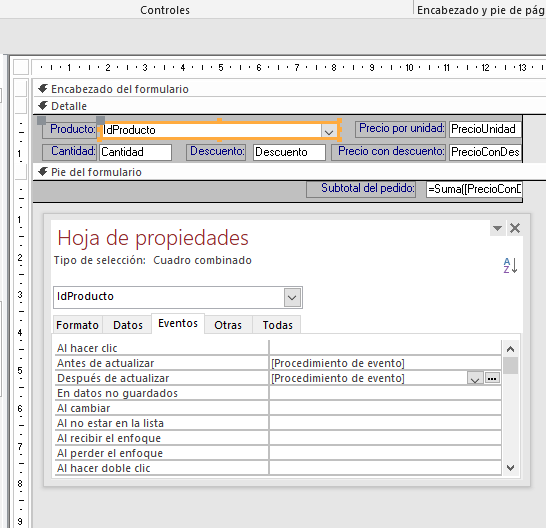 Como obtienen el precio del producto en el subformulario detalle de pedido en la bd neptuno